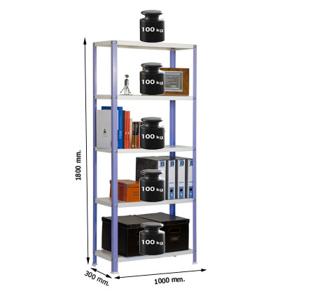 Cada estante soporta 100 Kg.