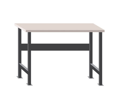 Construido en tubo de acero 40x40x2 mm con refuerzo de 30x30x2 mm. Parte superior en madera de pino cubierta con madera de haya en ambos lados. Altura regulable de 810-1.180 mm. Soporta un peso de 800 Kg.