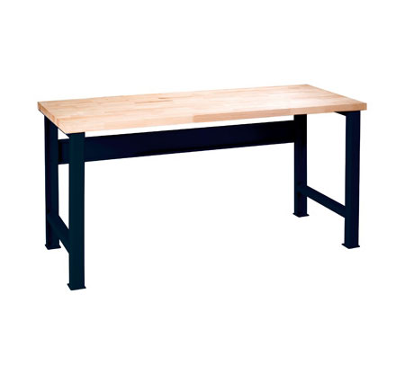 Banco de trabajo construido con tubo de acero y encimera maciza en madera de haya de 40 mm. Montada con 6 tornillos. El banco puede entregarse montado.