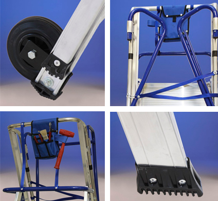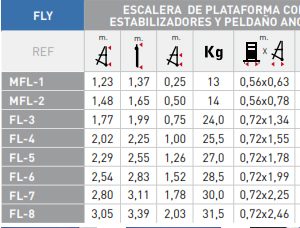 Las medidas de lo que ocupa la base de la escalera con los estabilizadores abiertos cambian según el modelo de escalera.
