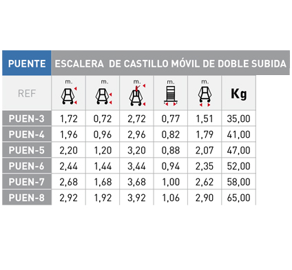 • Número de peldaños: de 3 a 8