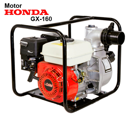 Motobomba de Aspiración Motor de Gasolina HONDA GX-160 de 4 Tiempos Potencia máxima 5,5 hp Caudal máx. 49.000 L/h Altura máx 20m Aspiración 7m Peso 26 Kg