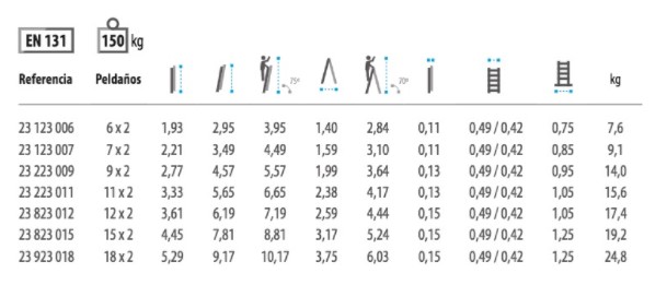 Distancia entre peldaños de 280 mm. Tapas finales de PVC antideslizante.
