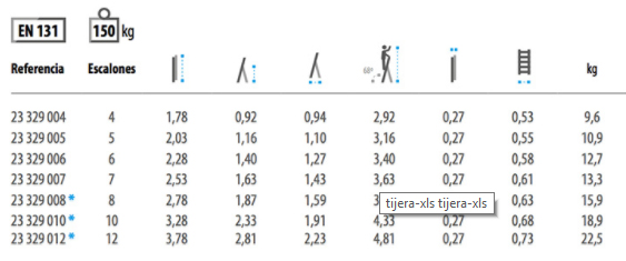 " los modelos 8,10,12 peldaños incorporan tirante de seguridad en aluminio"