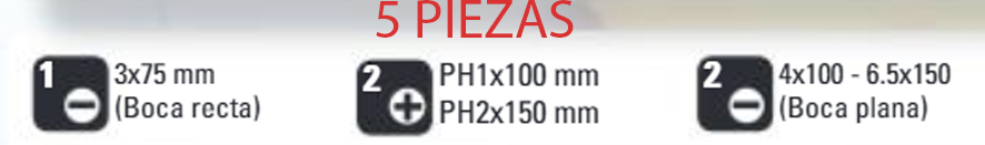SET DE DESTORNILLADORES CON VARILLA ACERADAS CR-V Y PUNTA NEGRA IMANTADAS CON TERMINACON DE MANGO EN MATERIAL ERGONÓMICO