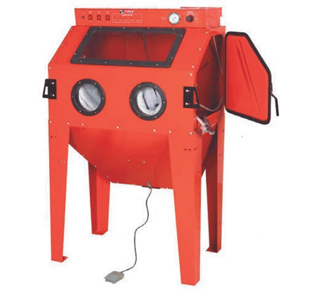 CABINA CHORREADORA DE ARENA para uso profesional de 350 litros con pistola de arena y cabezal de chorreado fijo, provista
