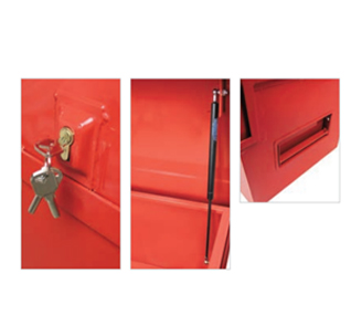 asistida y fácil de la tapa. Cierre con dos cerraduras Euro con llave única y cierre de pestillo. Entregado con 6 llaves por cofre.