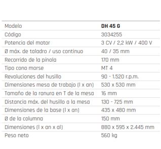 Taladro de columna industrial, robusto y con función de roscado.