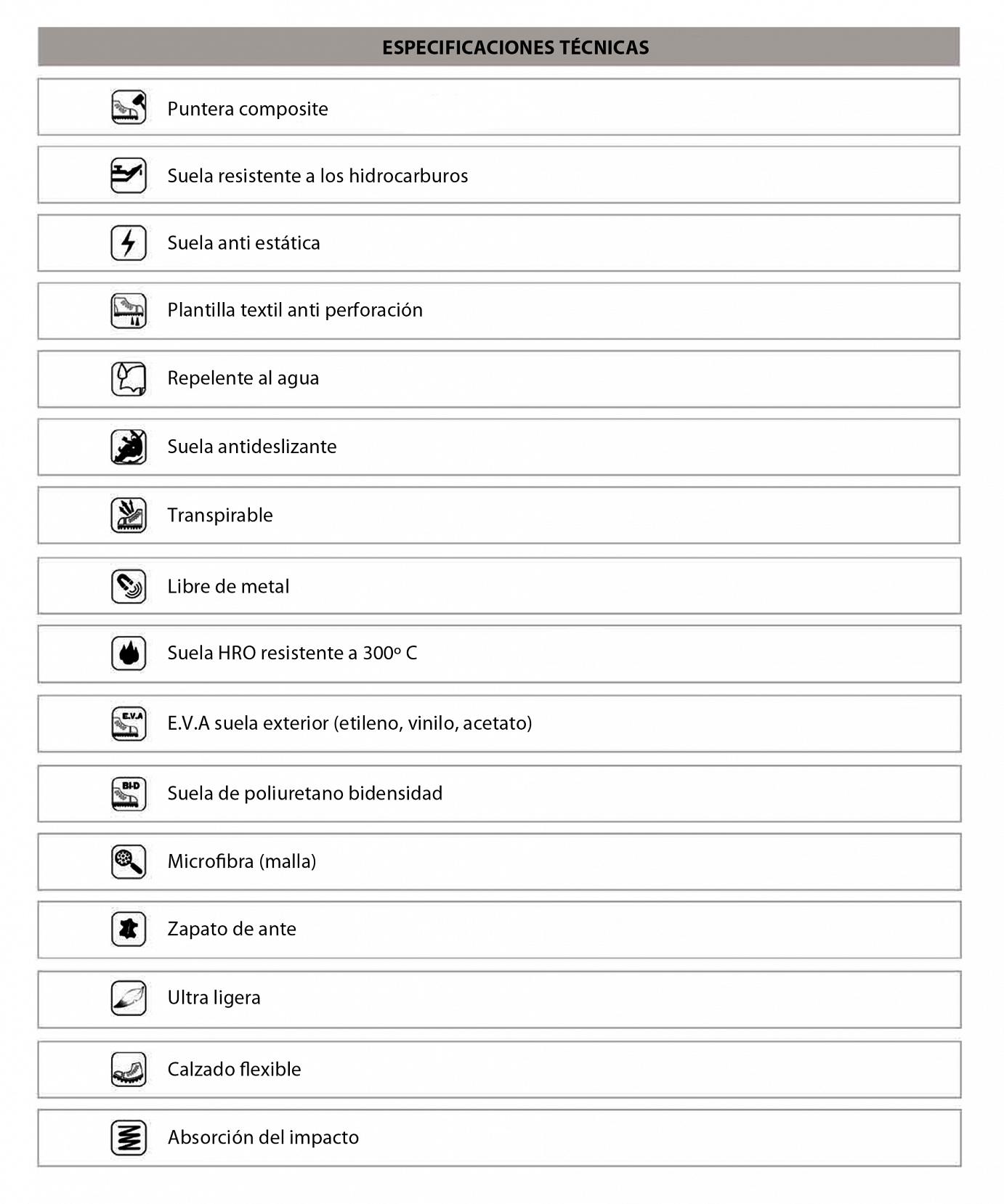 E.V.A, antideslizante, anti estática y HRO.